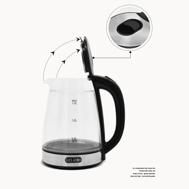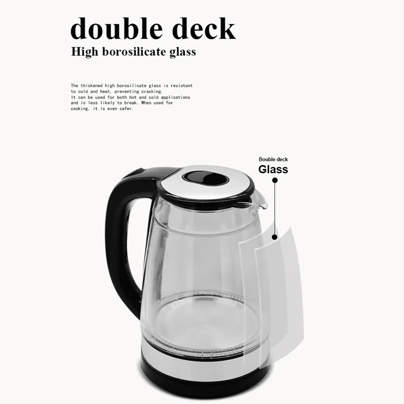 1.8L Electric Kettle Stainless Steel Double Layer Glass Health Preserving Pot Electric Water Heater with Blue Led Light Kitchen
