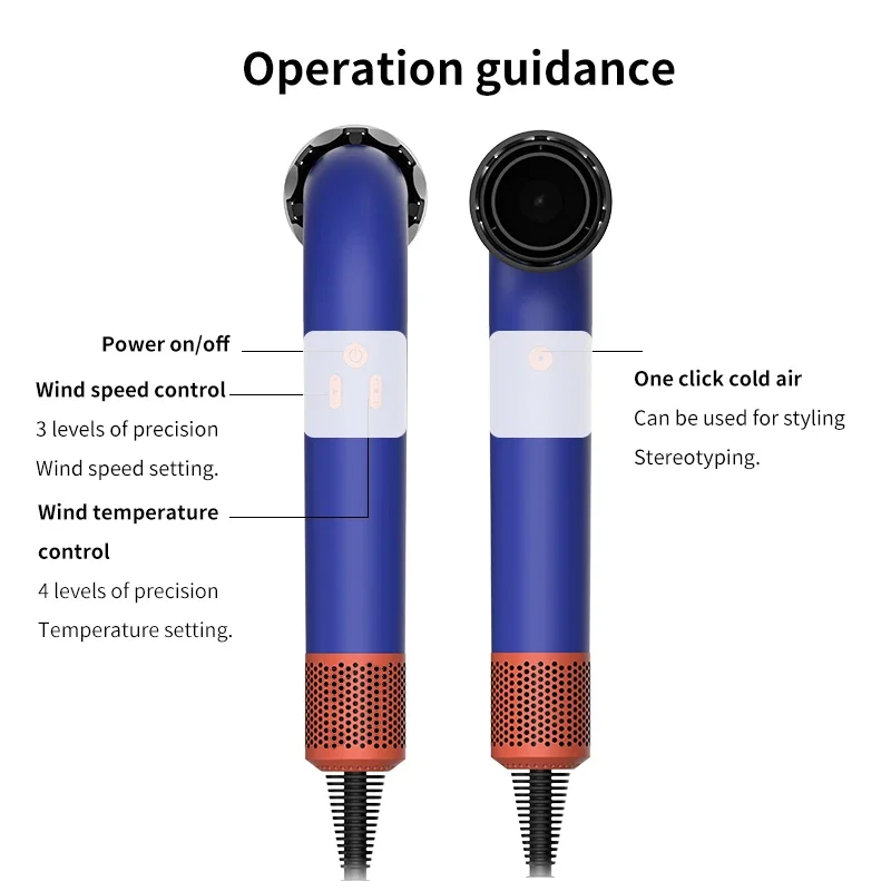 1400W pure original high-power hair dryer, dries hair quickly, lightweight body, low noise, comes with various types of nozzles