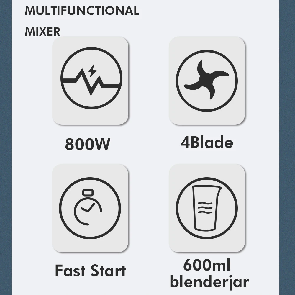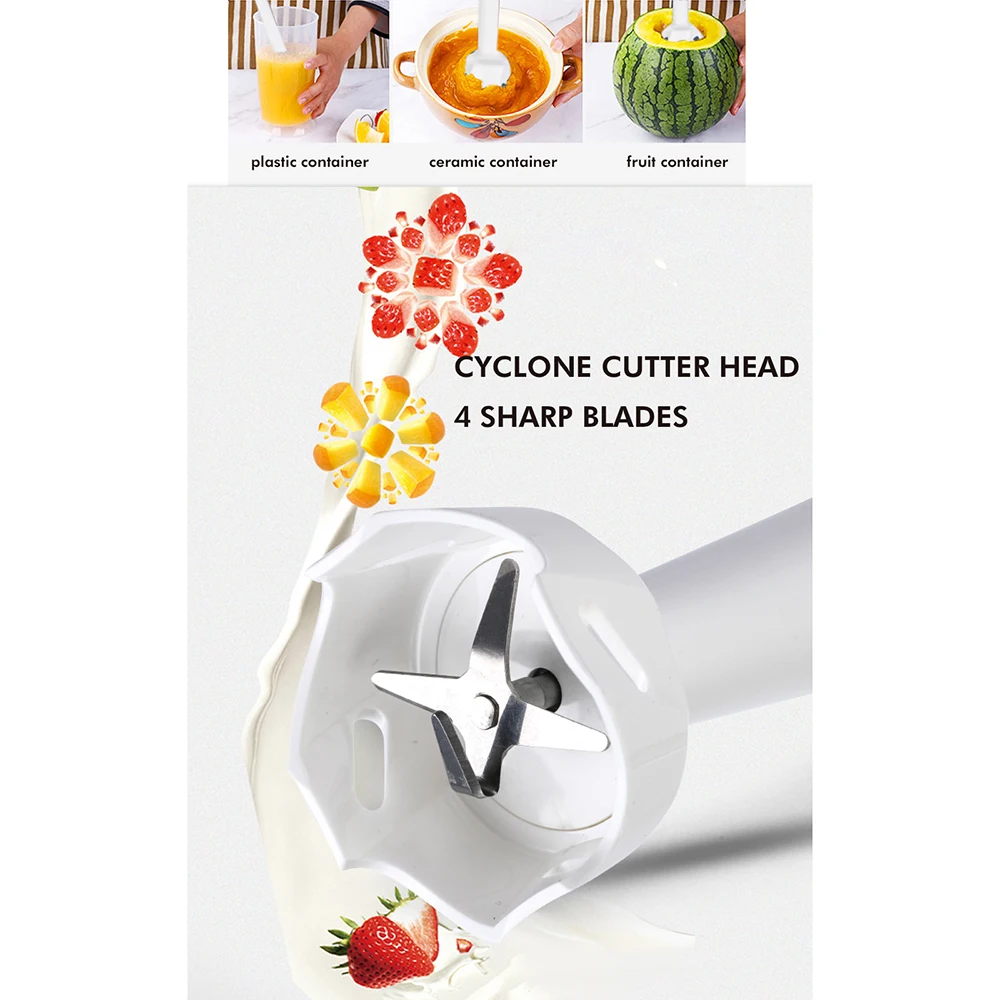 1: Versatile Handheld Blender: Our handheld blender is a versatile kitchen tool that mixes, whisks and purees a variety of ingredients to make smoothies, sauces, baby food, shakes, purees and soups. The high power 800 watt motor handles the most difficult mixing tasks with ease, ensuring smooth and consistent results.