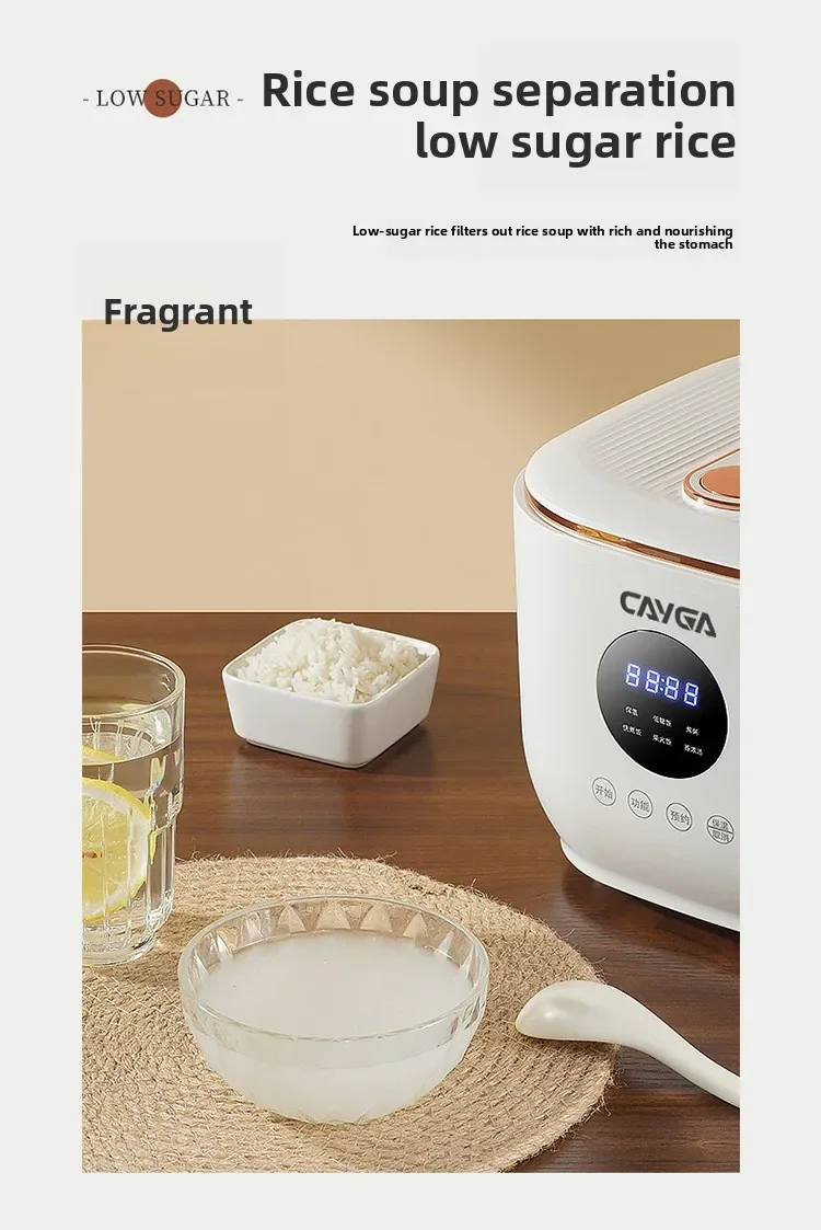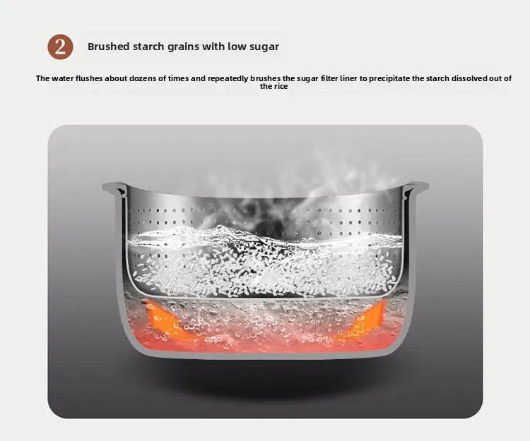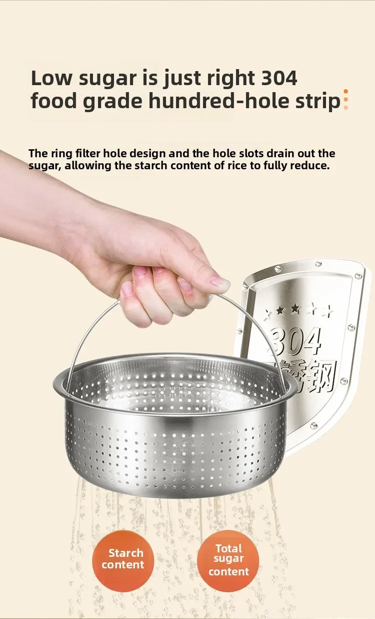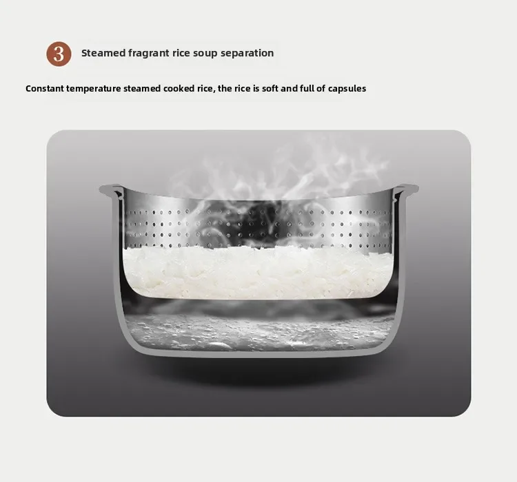 Rice soup separation technology: Through an in-designed design, rice soup can be accurately separated from rice during cooking. This can not only reduce the starch content in rice, but also be very friendly to people who are concerned about their health and need to control their sugar intake. It also allows people who like to drink rice soup to enjoy the original rice soup.