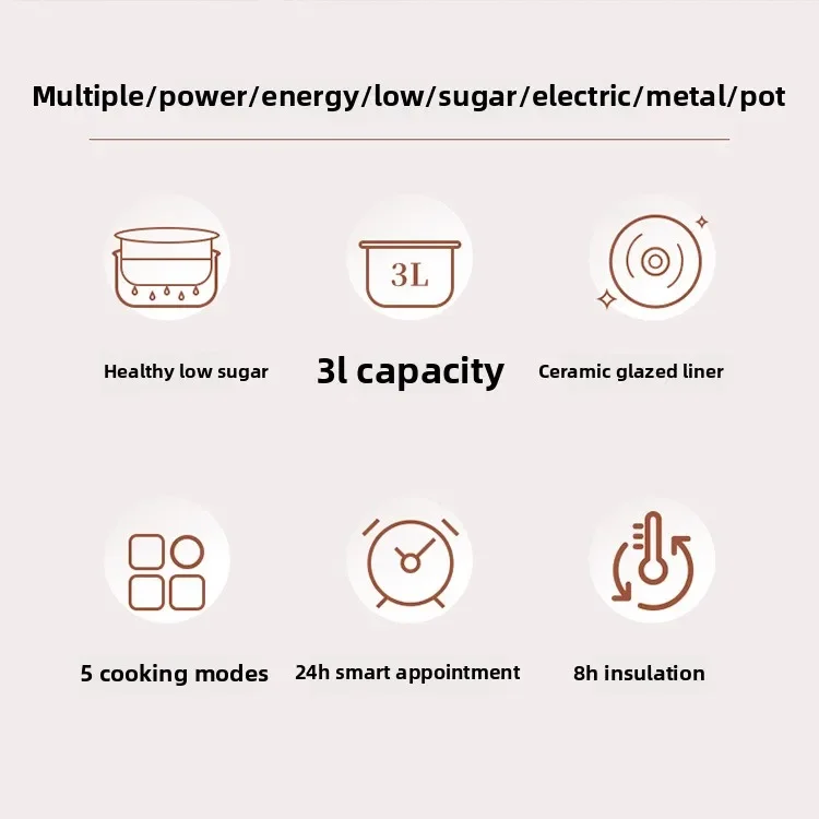 Multifunctional cooking: It has a variety of cooking functions, such as cooking rice, porridge, soup, steaming, etc. to meet the diverse cooking needs of different users.