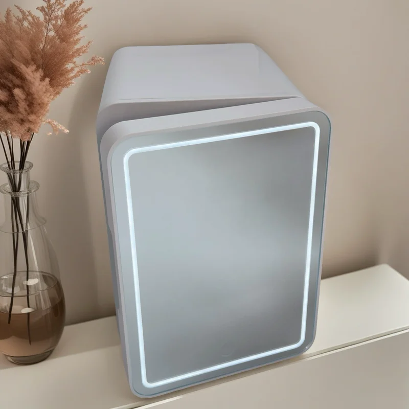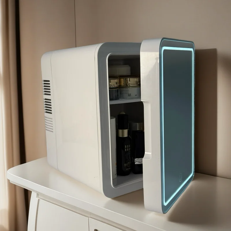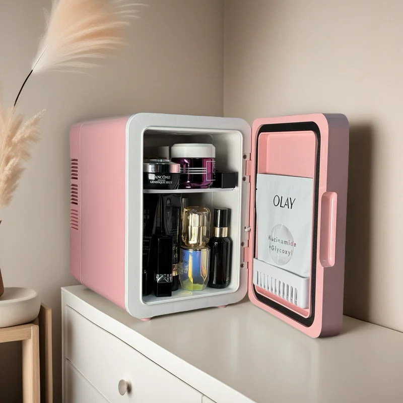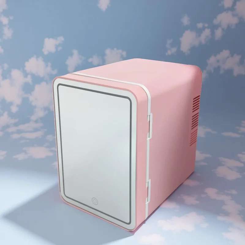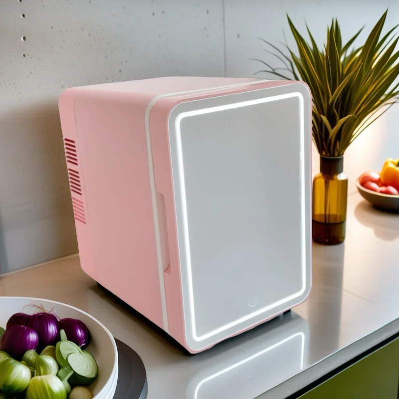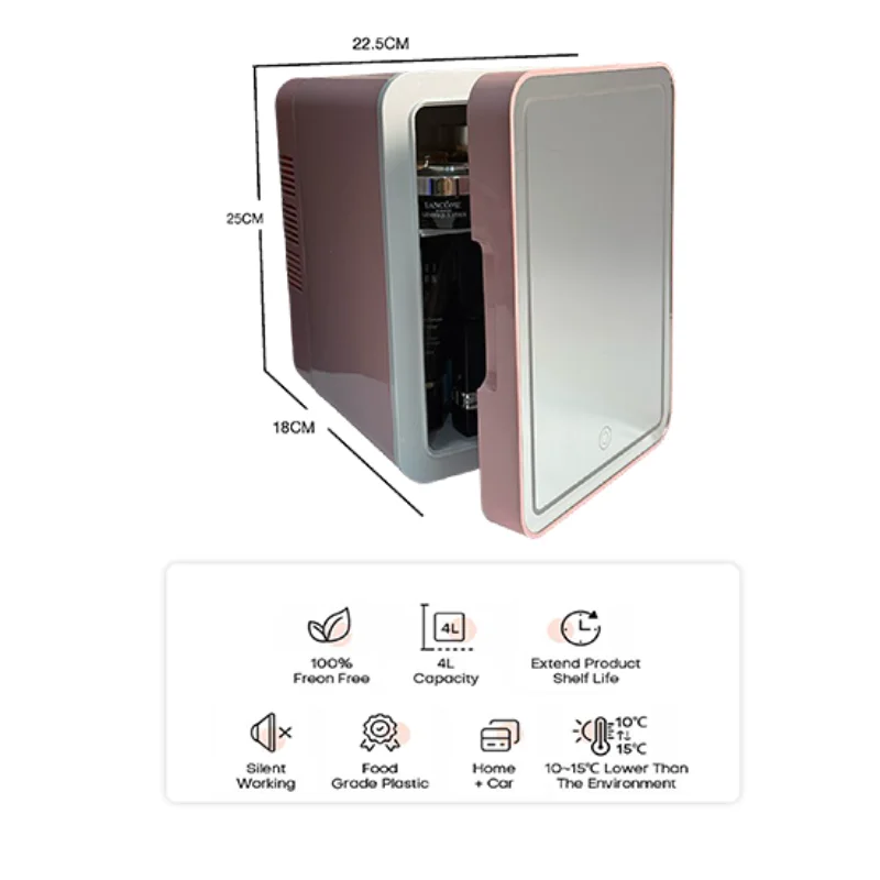 4L Fridge Newest Cool and Heat Adjust Desktop Mini Fridge Low Noise Pink Mini Fridge With HD Cosmetic Mirror