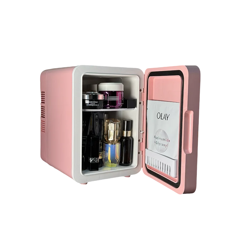 4L Fridge Newest Cool and Heat Adjust Desktop Mini Fridge Low Noise Pink Mini Fridge With HD Cosmetic Mirror