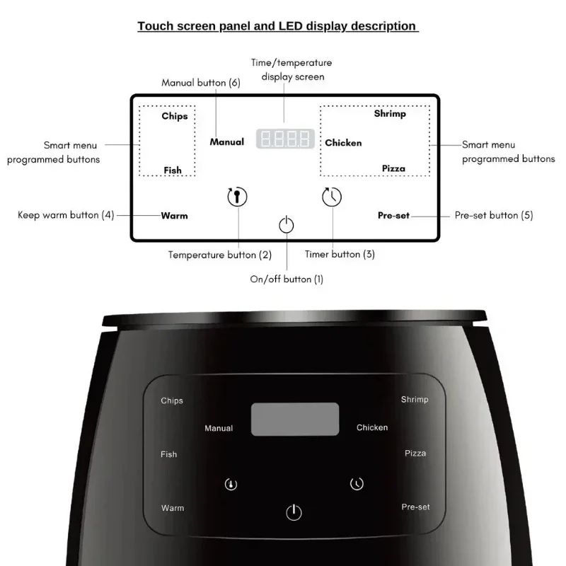 Be the first to review “6L Air Fryer Multi-functional Intelligent Touch Screen Oven Large Capacity Electro Mechanical Deep Fryer for Home Airfryer” Cancel reply
