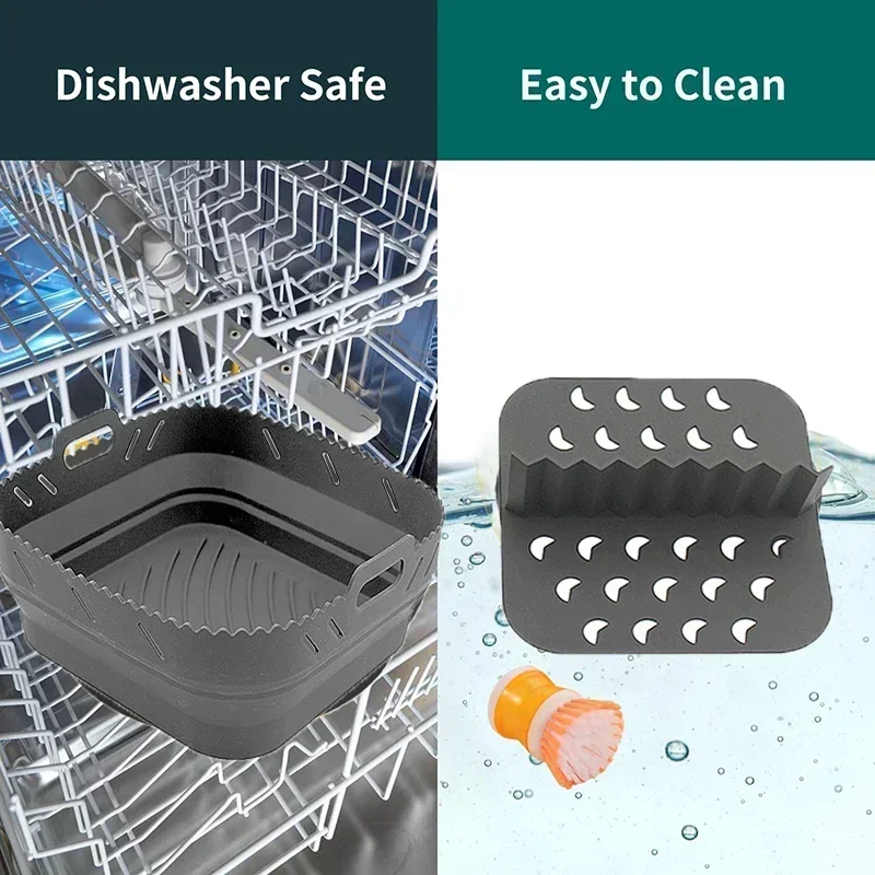 Air Fryer Silicone Tray Fried Chicken Baking Tool Oven Baking Tray with Divider Plate Reusable Liner Airfryer Silicone Basket