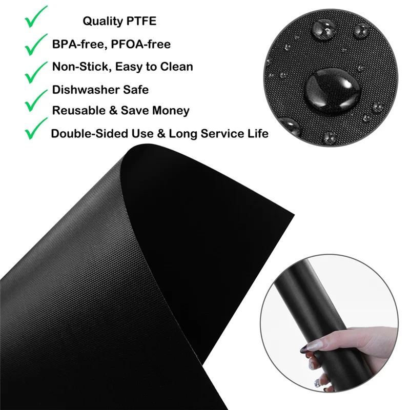 [Premium Material] – Our oven liners and meshes are made of non-toxic PTFE, with a special coating on the surface, BPA-free and PFOA-free, non-stick, high temperature resistant, anti-corrosion, and can be used longer than other ordinary oven grill baking mats on the market. Warm Tip: Please use below 450°F/235°C