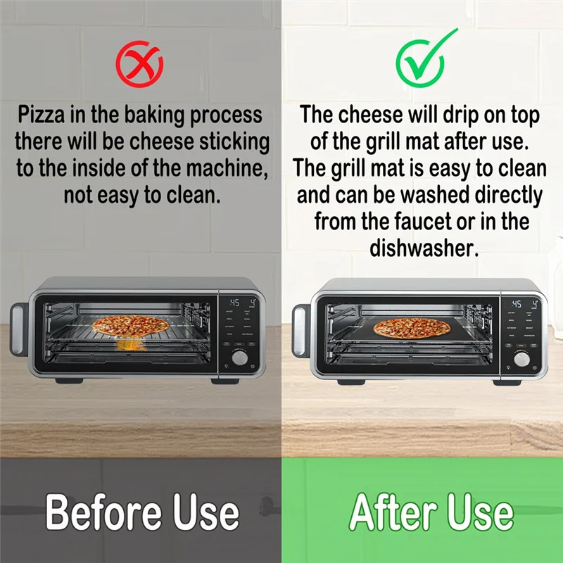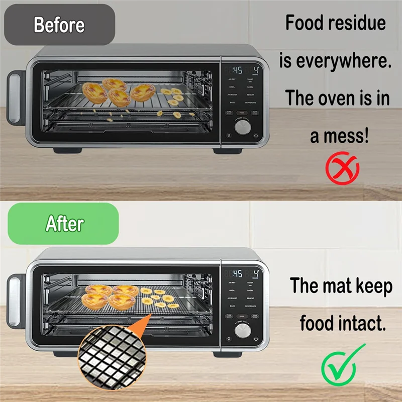 [How to Use] – Simply place the liner on the bottom of your oven/air fryer and place the mesh sheet on top of the grill. Warm Tip: Avoid direct contact with heating elements or open flames