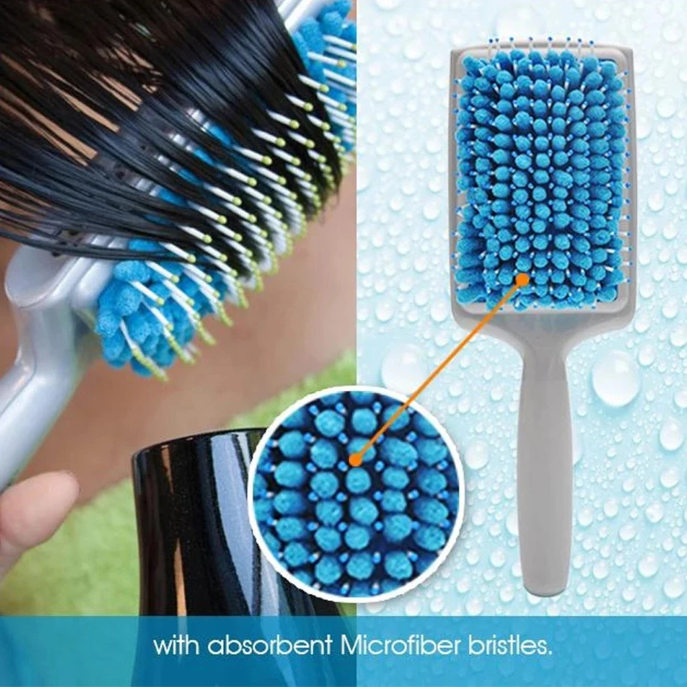 – Absorbent microfiber bristles remove water from hair, can dry hair faster. absornet hair brush