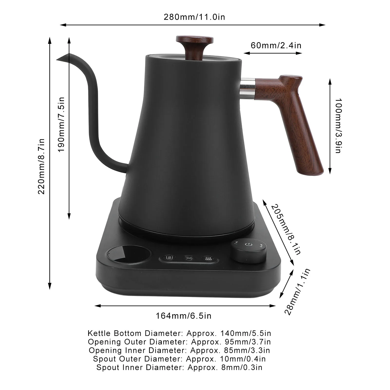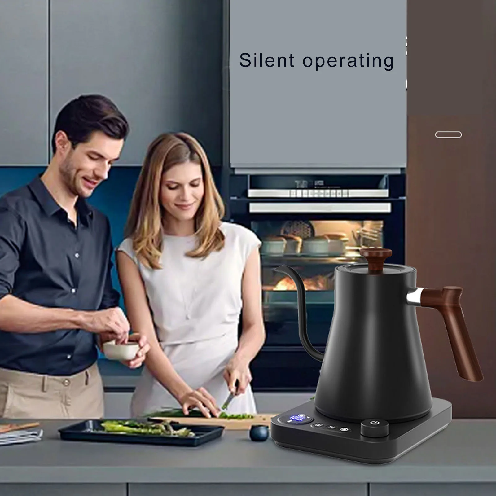 Electric Gooseneck Kettle 1200W 304 Stainless Steel Precise Temperature Control Teapot Pour Over Coffee Kettle with LCD Screen Timer for Home