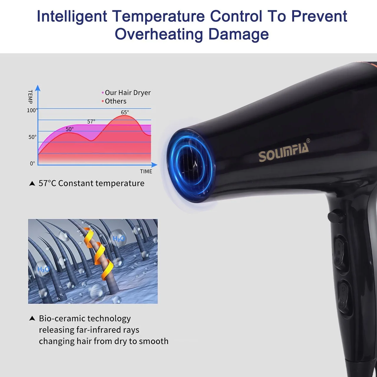 Featuring a high-power motor, this hair dryer generates a strong and consistent airflow, enabling you to dry your hair quickly and efficiently. Save time during your daily hair care routine. -