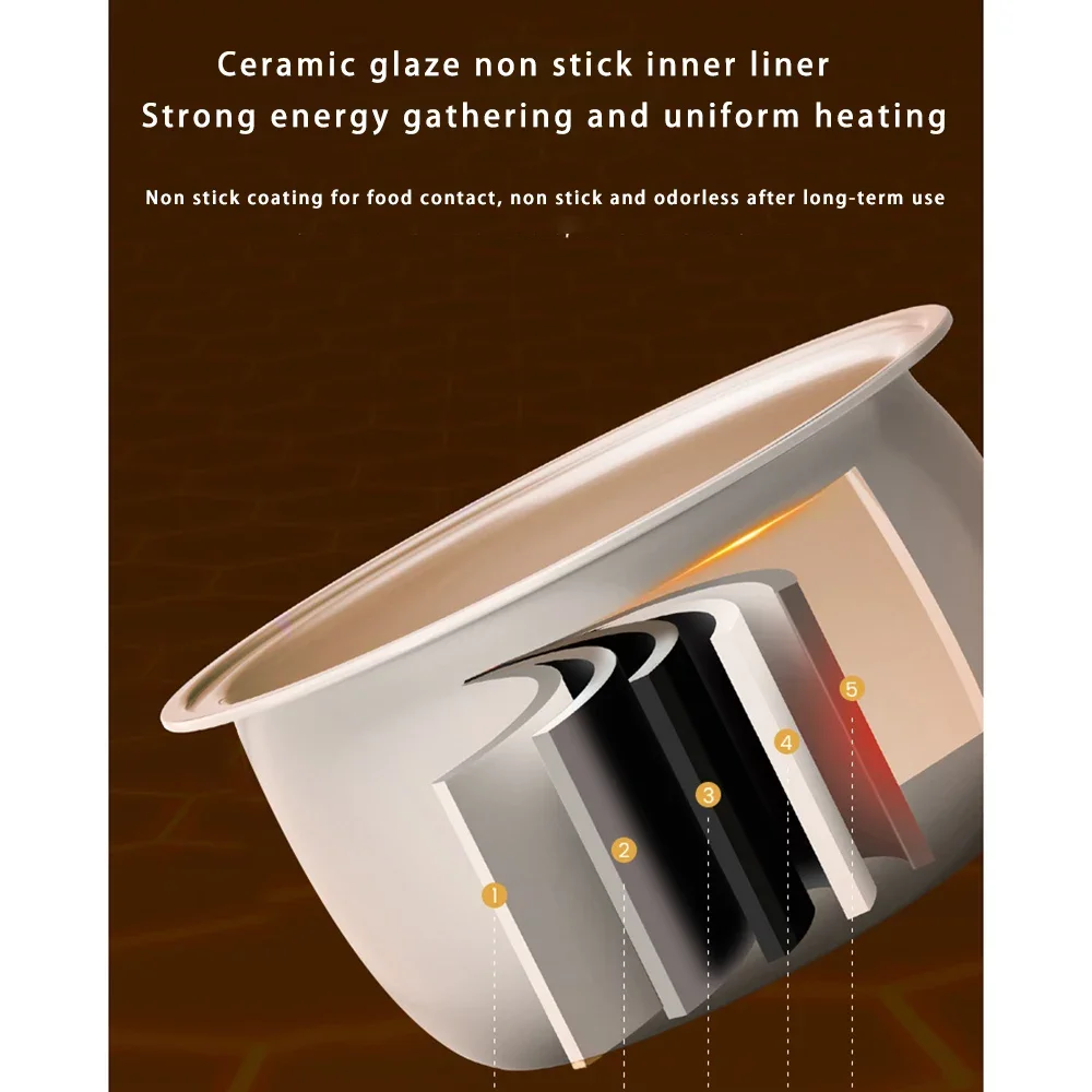 Function: Non-Stick Coating Inner Pot,Reservation,Rice Cooking & Porridge Cooking & Soup Stewing,Cooking & Stewing & Heating,Coarse Cereals,Porridge/Soup,Stewing,Reheating,Brown Steamed Rice