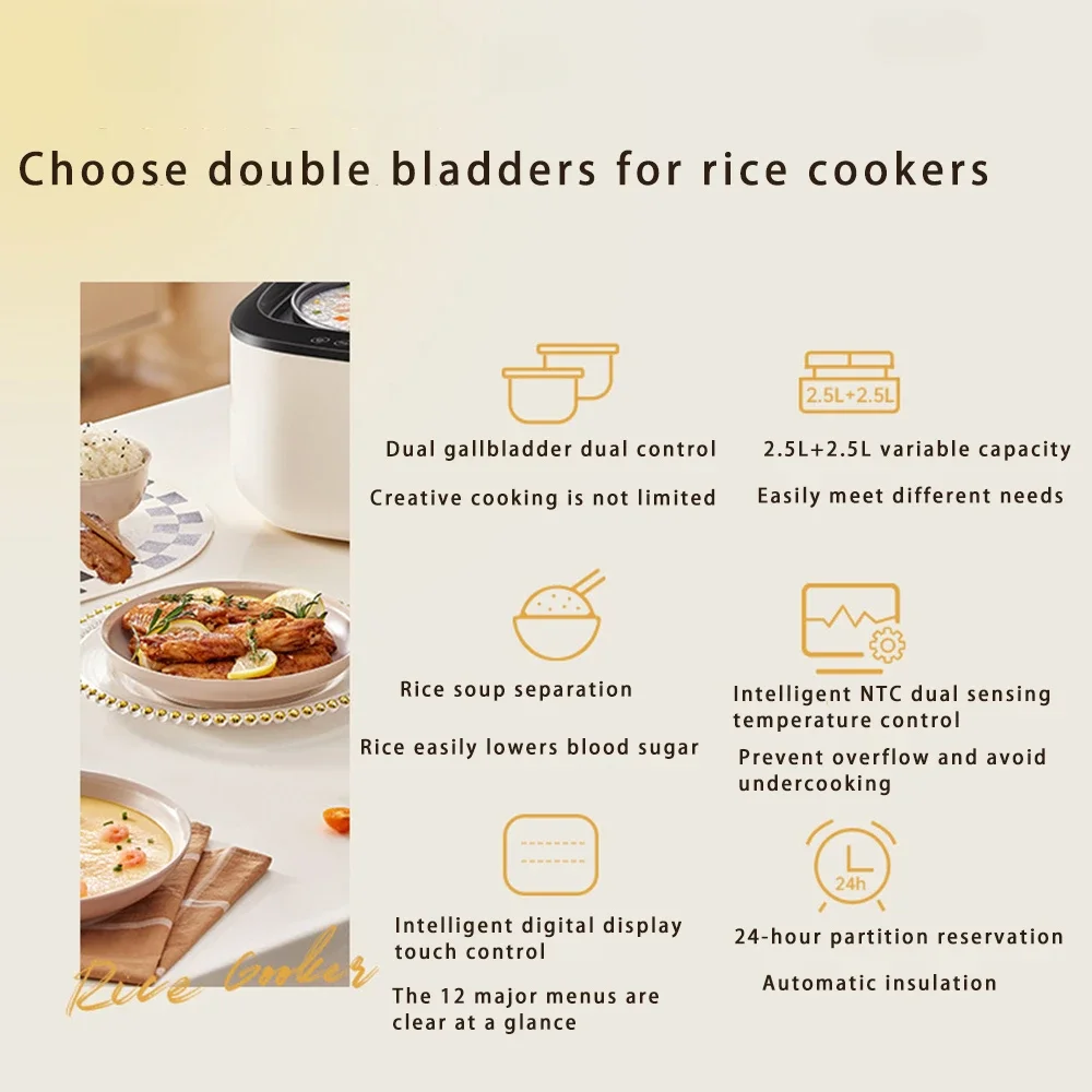 Smart Multi-function Rice Cooker, Home 2.5 Liter + 2.5 Liter 1-4 Person Double Air Bag Rice Cooker
