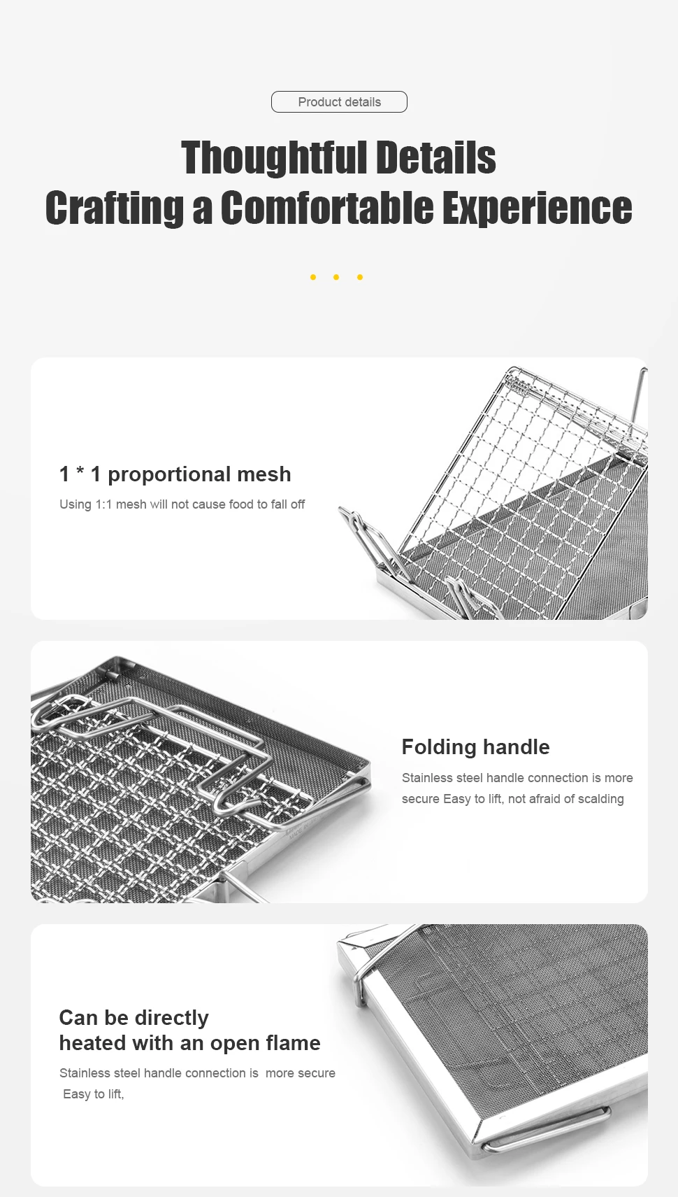 304 Stainless Steel: Camping stove toaster is made of durable stainless steel, which is not susceptible to rust, scuffing and wear, food-grade, and anti-overheat. Upgraded high quality grill for scratch resistance, suitable for home and outdoor camping BBQ baking bread or other food.