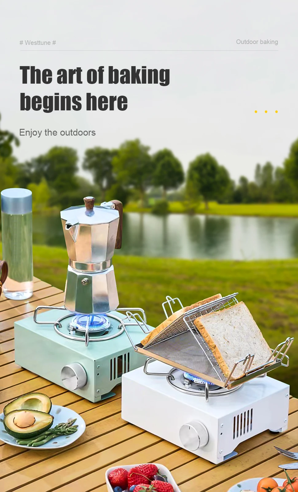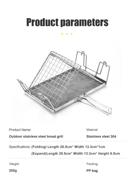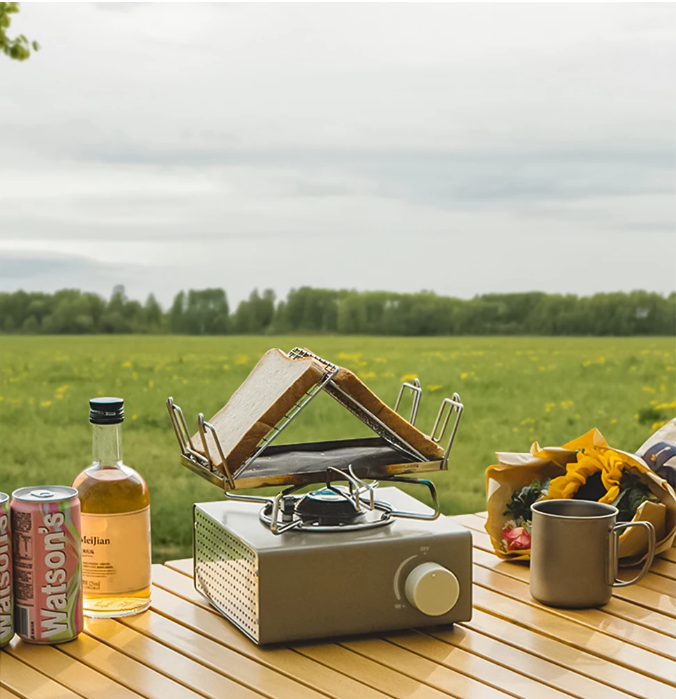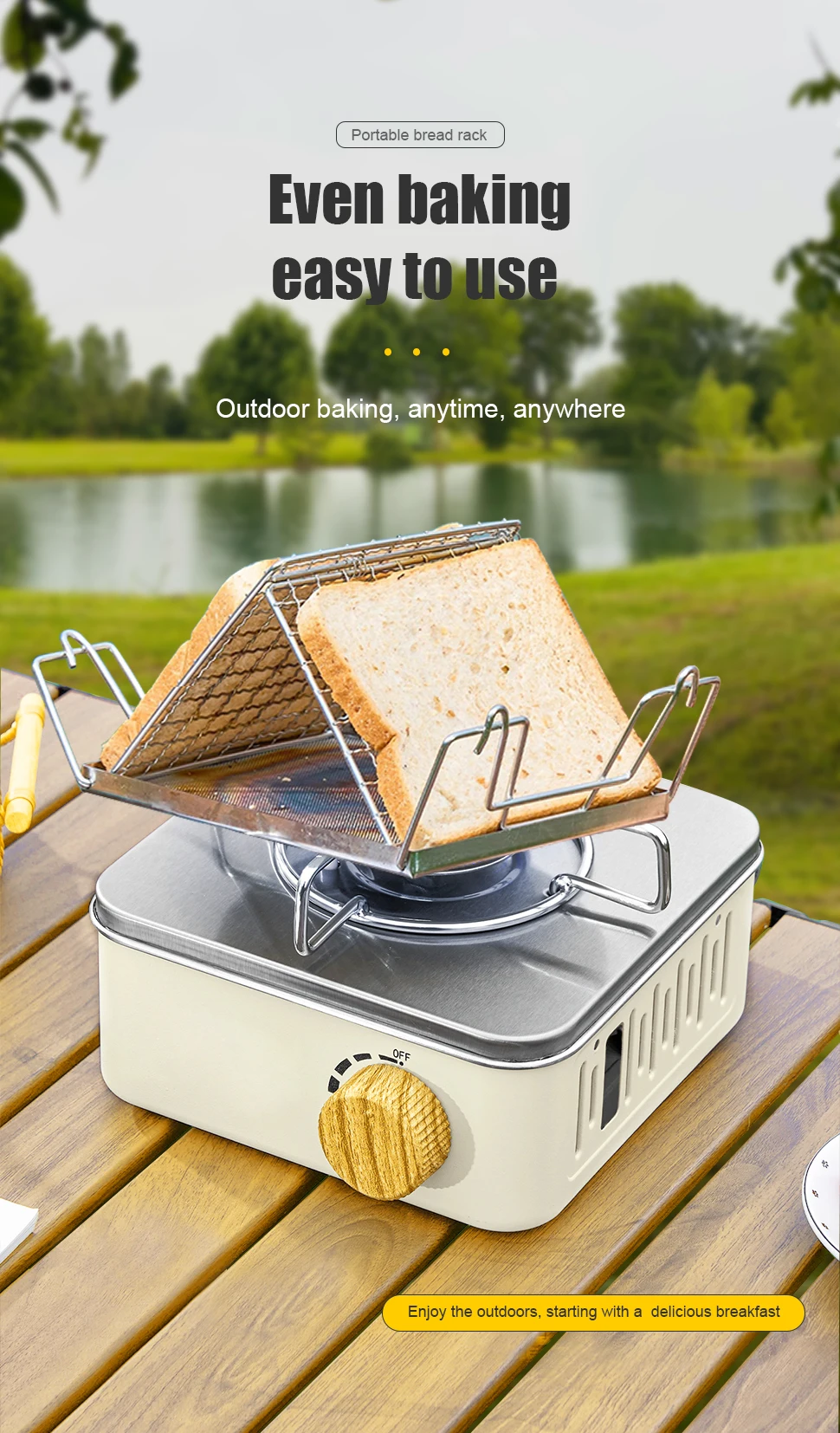 Perfectly Size: Portable camping stove toaster with 7.9 x 5.3in storage size, 10 x 5.9 inch expansion size. Bring this handy little toaster along with you so you can complete your gourmet camping breakfast with perfectly crispy toaster.